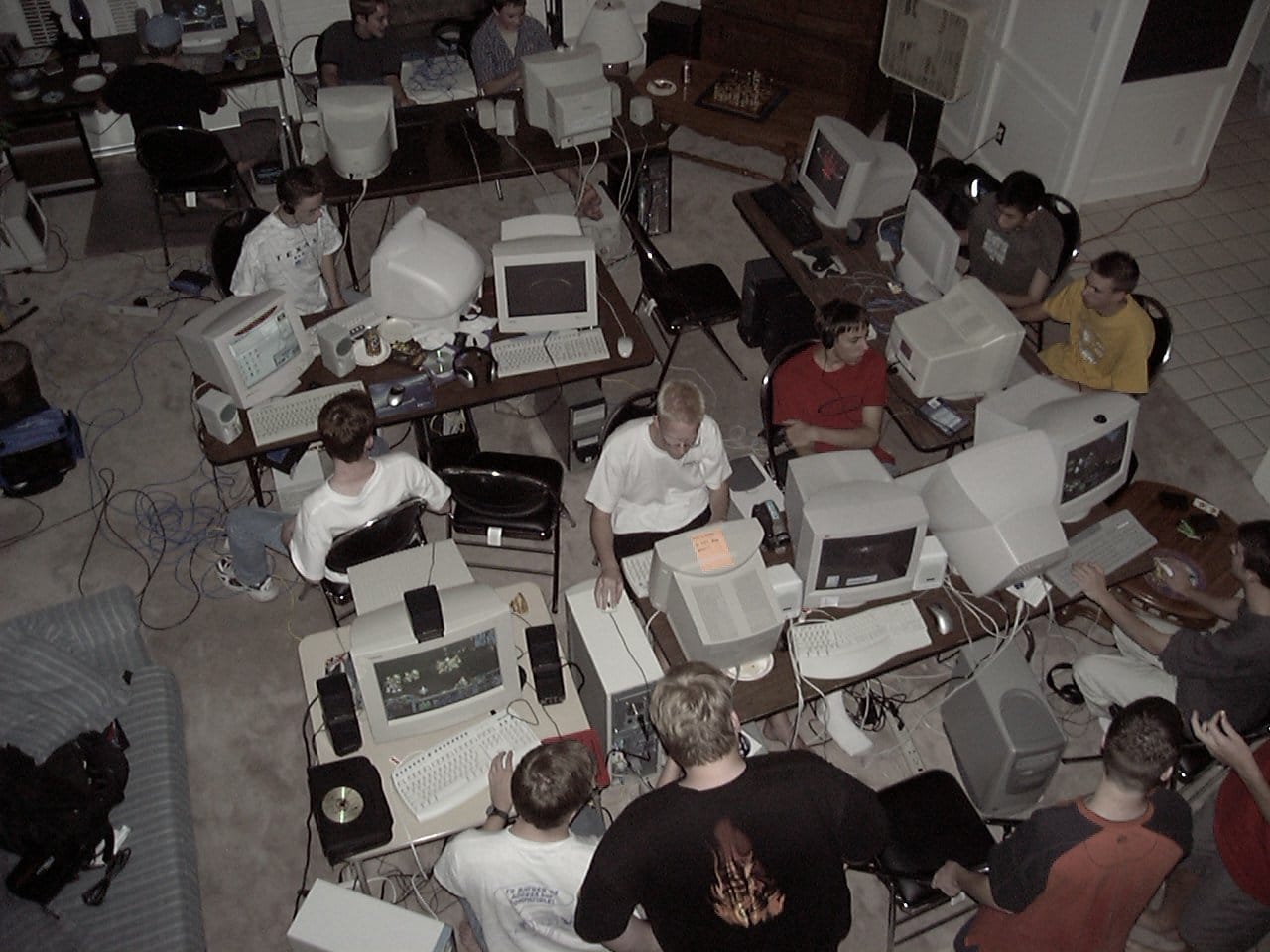 This ensured a relatively lag-free experience, but it also meant coming to grips with the physical reality of computing β hauling heavy CRT monitors and PC towers into place, connecting everything with network cables and switches. Things seldom went off without a hitch, and LAN events frequently involved a lot of troubleshooting, not to mention careful maneuvering to avoid tripping over a cord and bringing everything crashing to the ground, or spilling a two-liter bottle of soda across a keyboard.